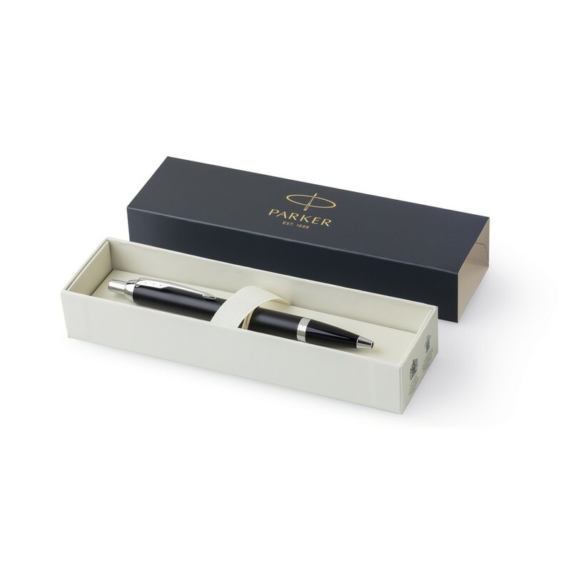 Długopis Parker IM, wkład w niebieskim kolorze, zapakowany w pudełko upominkowe, produkt wykonany z metalu