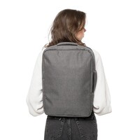 Plecak na laptopa 15" RPET, duża komora zapinaną na zamek z wieloma kieszeniami wewnętrznymi, kieszeń na laptopa 15 cali z zapięciem na rzep, pojemność 12L, konstrukcja obejmuje wzmocnione, wentylowane plecy, regulowane szelki, boczny uchwyt do przenoszenia oraz pasek do mocowania na walizce, maksymalne obciążenie: 10 kg , produkt wykonany z poliestru RPET 300D z podszewką z RPET 210D