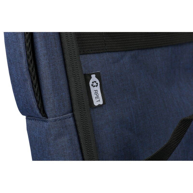 Plecak na laptopa 15" RPET, duża komora zapinaną na zamek z wieloma kieszeniami wewnętrznymi, kieszeń na laptopa 15 cali z zapięciem na rzep, pojemność 12L, konstrukcja obejmuje wzmocnione, wentylowane plecy, regulowane szelki, boczny uchwyt do przenoszenia oraz pasek do mocowania na walizce, maksymalne obciążenie: 10 kg , produkt wykonany z poliestru RPET 300D z podszewką z RPET 210D