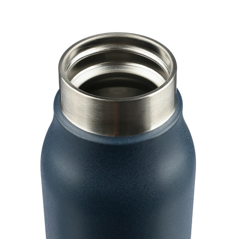 Butelka termiczna 600 ml, uchwyt ułatwiający przenoszenie, utrzymuje temperaturę napojów – ciepłych do 6 godzin, zimnych do 9 godzin, na przedniej części ikona aluminium z recyklingu na produkcie, pakowana pojedynczo w brązowe kartonowe pudełko, wnętrze wykonane ze stali nierdzewnej 304, zewnętrzna warstwa ze stali nierdzewnej 201,szczelna czarna nakrętka z PP, aluminiowy karabińczyk