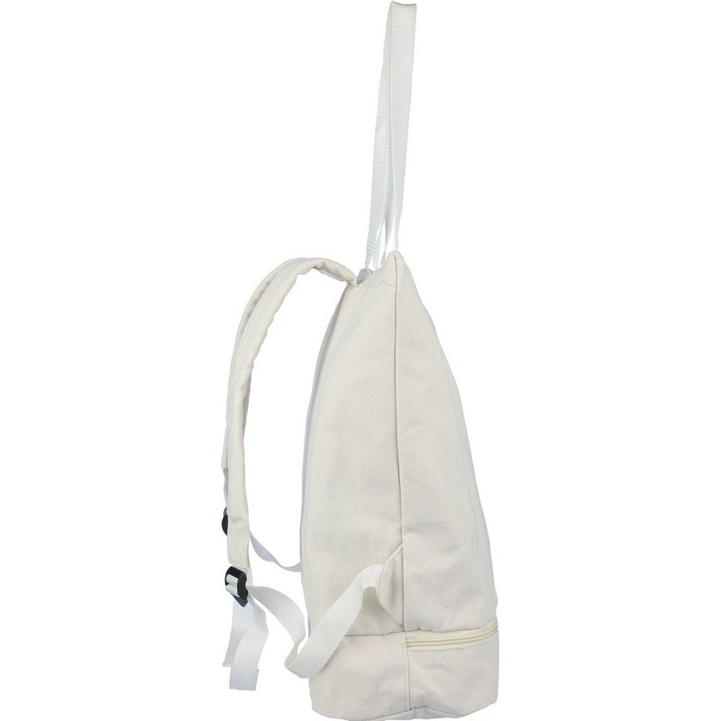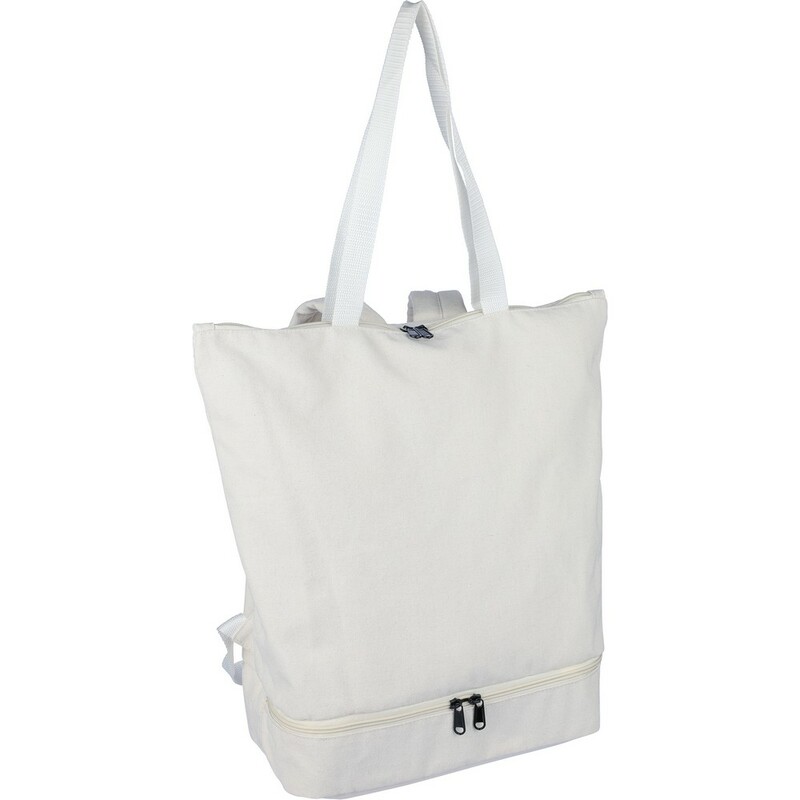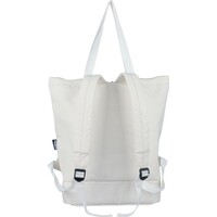 Plecak z funkcją torby na ramię, posiada dużą komorę zapinaną na zamek na górze, komorę zapinaną na zamek na dole, przegrodę na laptopa 15", dwie kieszenie wewnętrzne oraz jedną zewnętrzną kieszeń na zamek, konstrukcja obejmuje długie uchwyty do noszenia, wyściełane, regulowane szelki, pojemność: 30L, maksymalne obciążenie: 15 kg, produkt wykonany polibawełny z recyklingu (330 g/m²), podszewka z poliestru 210D