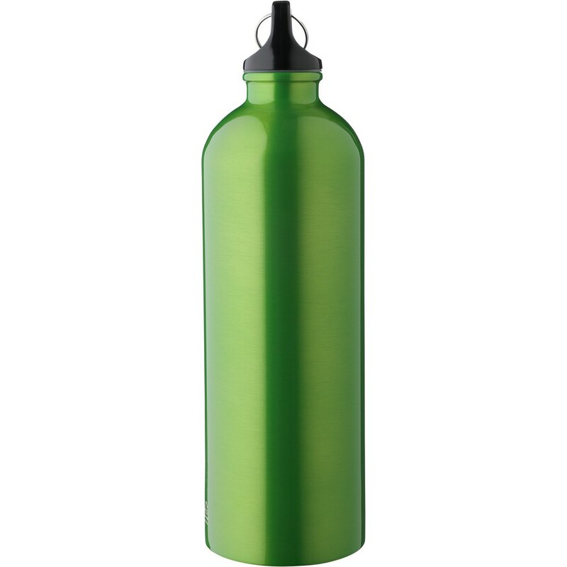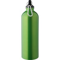 Butelka sportowa 750ml, jednowarstwowa, ikona recyklingu na produkcie, nie nadaje się do mycia w zmywarce, produkt wykonany ze stali nierdzewnej z recyklingu, nakrętka z PP, srebrny aluminiowy karabińczyk