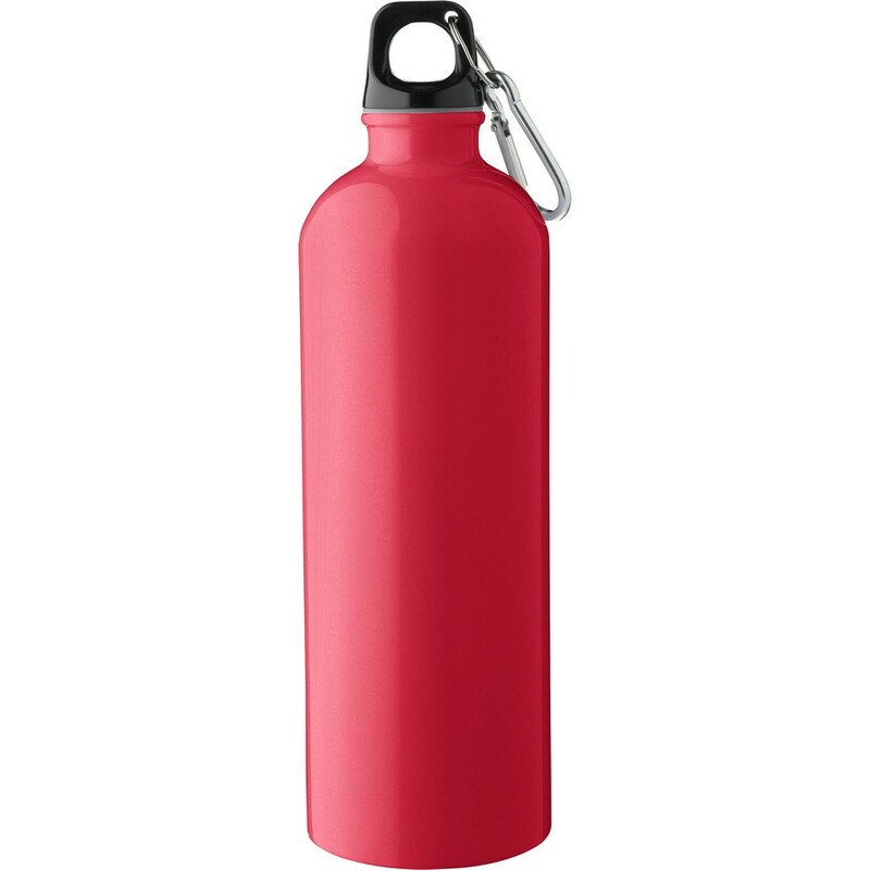 Butelka sportowa 750ml, jednowarstwowa, ikona recyklingu na produkcie, nie nadaje się do mycia w zmywarce, produkt wykonany ze stali nierdzewnej z recyklingu, nakrętka z PP, srebrny aluminiowy karabińczyk