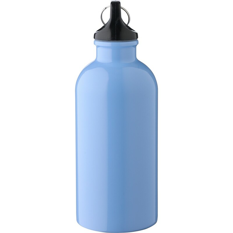 Butelka sportowa 400 ml, ikona recyklingu na produkcie, nie nadaje się do mycia w zmywarce, produkt wykonany ze stali nierdzewnej z recyklingu, nakrętka z PP, srebrny aluminiowy karabińczyk