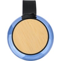 Butelka sportowa 750 ml, ozdobiona bambusowym detalem na górze, silikonowy pasek do przenoszenia, nie nadaje się do mycia w zmywarce, indywidualnie zapakowana w torebkę foliową z recyklingu, produkt wykonany z RPET, nakrętka z PP