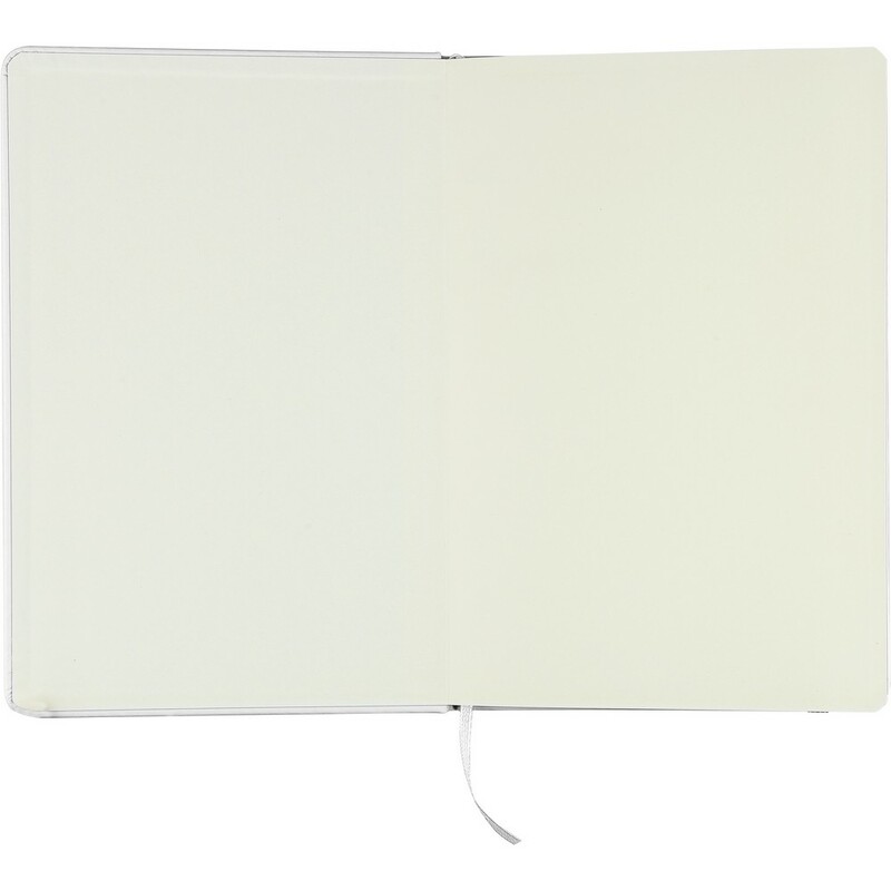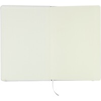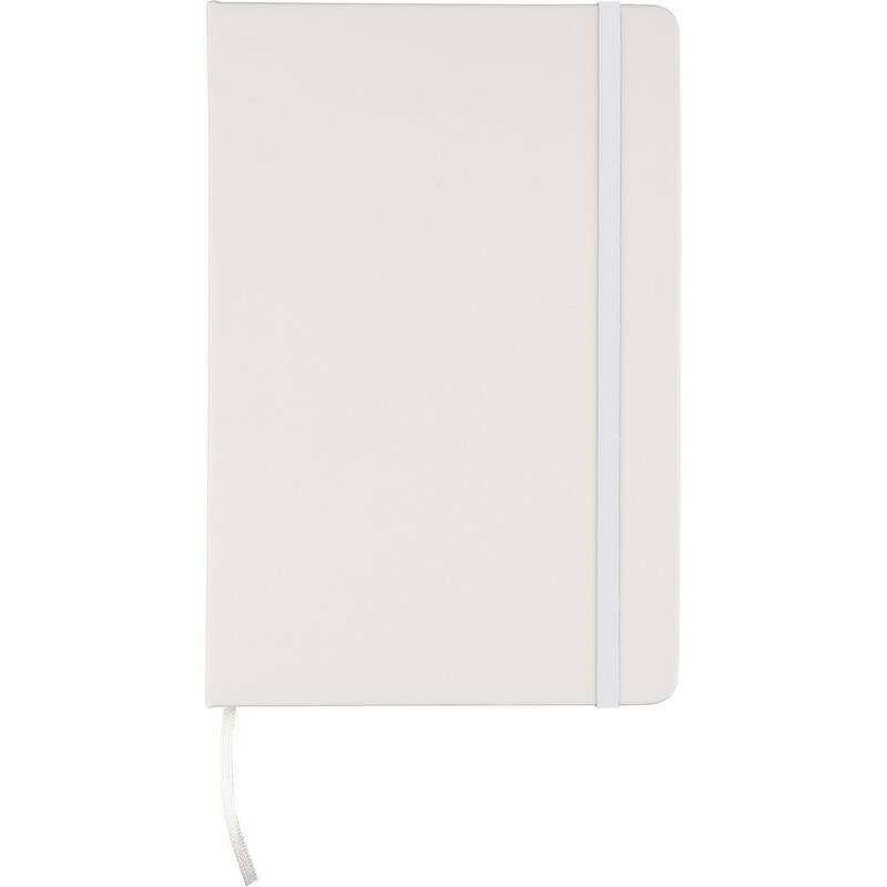 Notatnik ok. A5 RPET, z twardą okładką wykonaną z RPET PU, zawierający 80 stron w linie (70 g/m²), tasiemka zakładkowa umożliwia wygodne zaznaczanie ostatniej strony lub ważniejszych notatek, dodatkowe zamknięcie w postaci kolorowej elastycznej opaski, ikona recyklingu na tylnej stronie