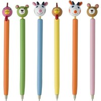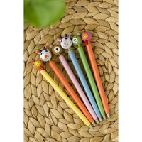 Długopis "zwierzątko" z kolorowym trzonem, występuje w 6 różnych wzorach sprzedawanych losowo, wkład w niebieskim kolorze, produkt wykonany z drewna i żelaza