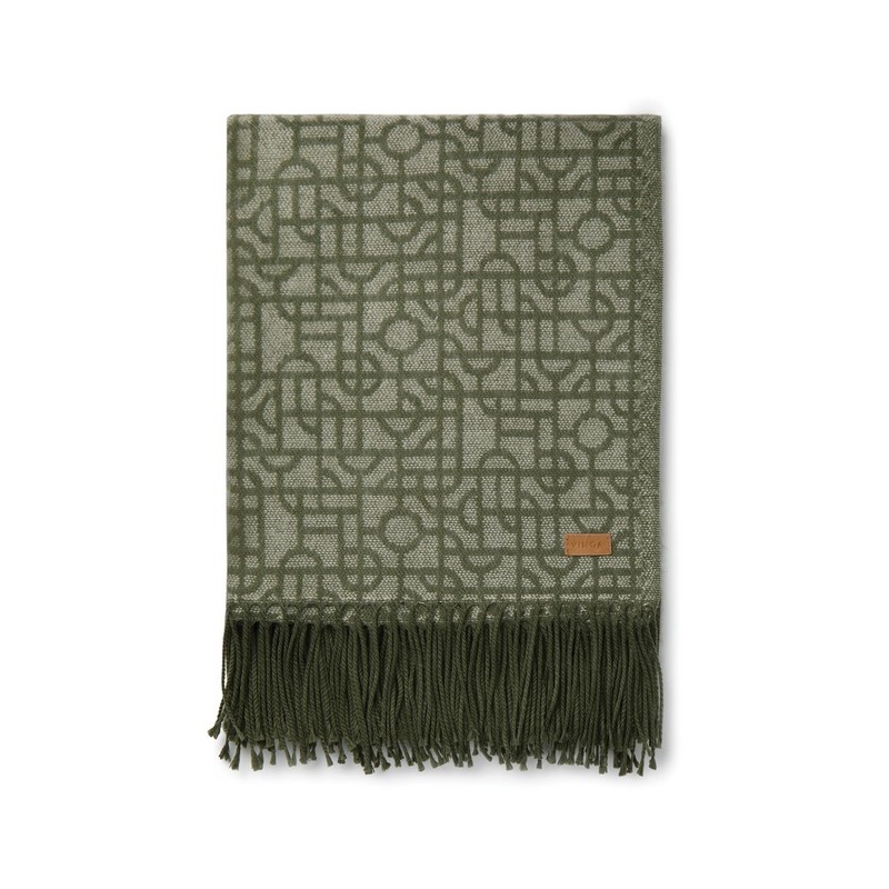Koc z geometrycznym wzorem, wykonany z materiałów syntetycznych, spełnia standardy normy OEKO-TEX Standard 100