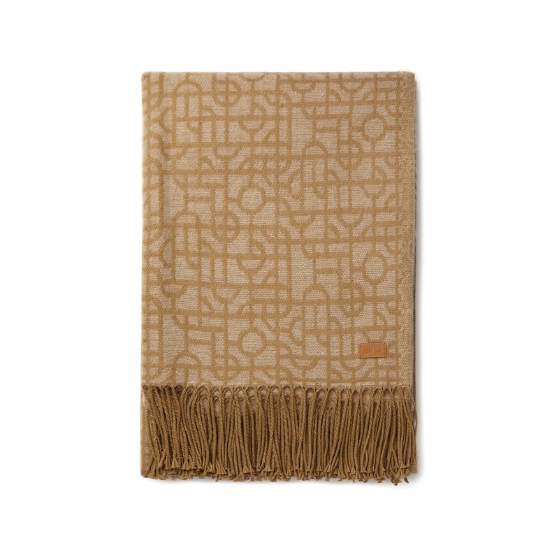 Koc z geometrycznym wzorem, wykonany z materiałów syntetycznych, spełnia standardy normy OEKO-TEX Standard 100