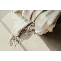 Koc z geometrycznym wzorem, wykonany w 100% z akrylu, spełnia standardy normy OEKO-TEX Standard 100