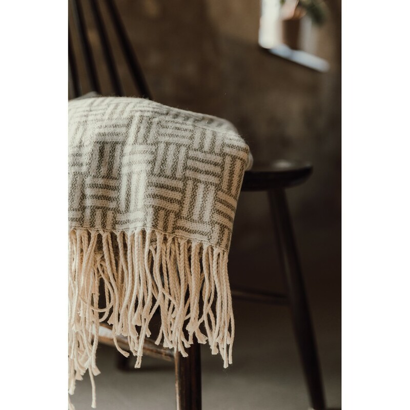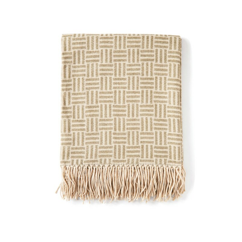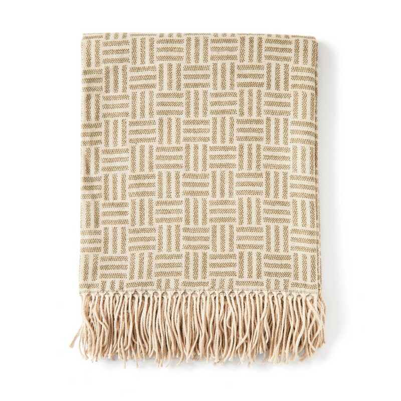 Koc z geometrycznym wzorem, wykonany w 100% z akrylu, spełnia standardy normy OEKO-TEX Standard 100
