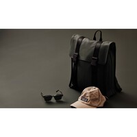Plecak, wykonany z wodoodpornego materiału, kieszeń na zamek z boku, ukryta kieszeń z tyłu, regulowane paski na ramiona
