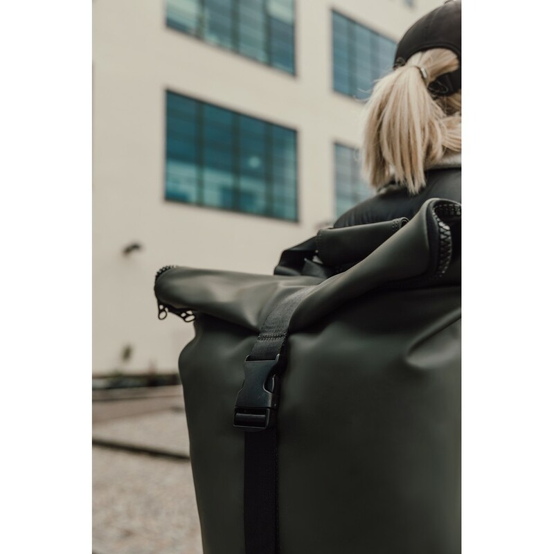 Plecak, wykonany z PU, dzięki specjalnej konstrukcji może być używany zarówno jako plecak jak i jako torba na ramię, wyściełana przegroda na laptopa, możliwość zamocowania do ramy roweru