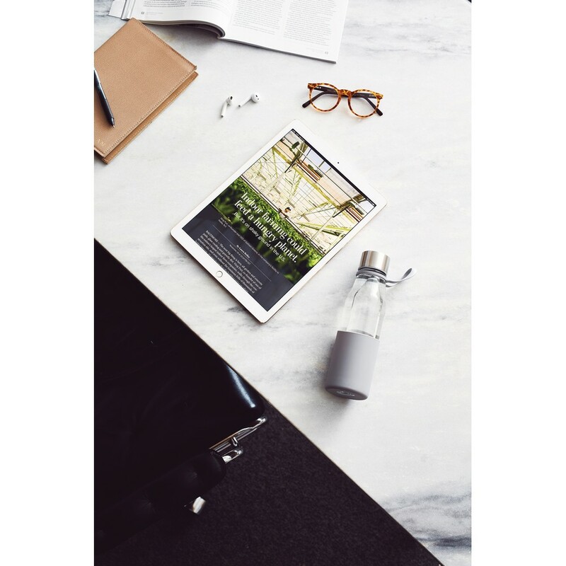 Szklana butelka 550 ml, pojedyncza ścianka, wykonana z wytrzymałego szkła borokrzemowego odpornego na wysokie temperatury