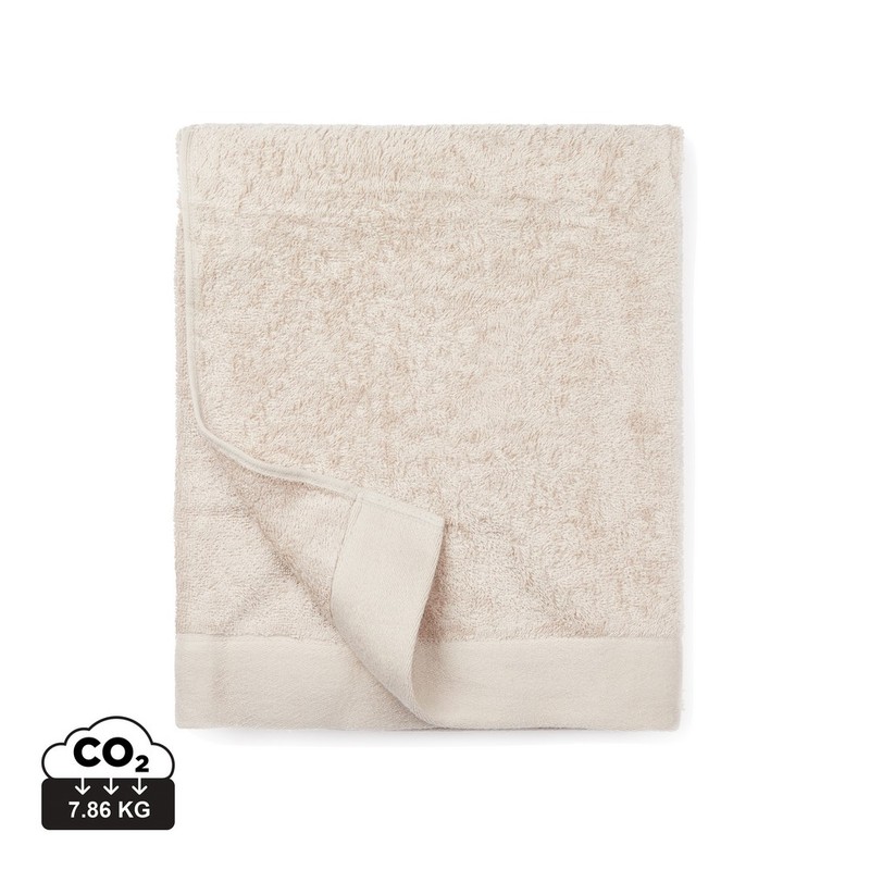 Ręcznik, miękki i solidny, wykonany w 68% z bawełny z certyfikatem BCI i 32% z Tencelu, który jest naturalnym włóknem pozyskiwanym z certyfikowanych lasów i który zapewnia doskonałą chłonność