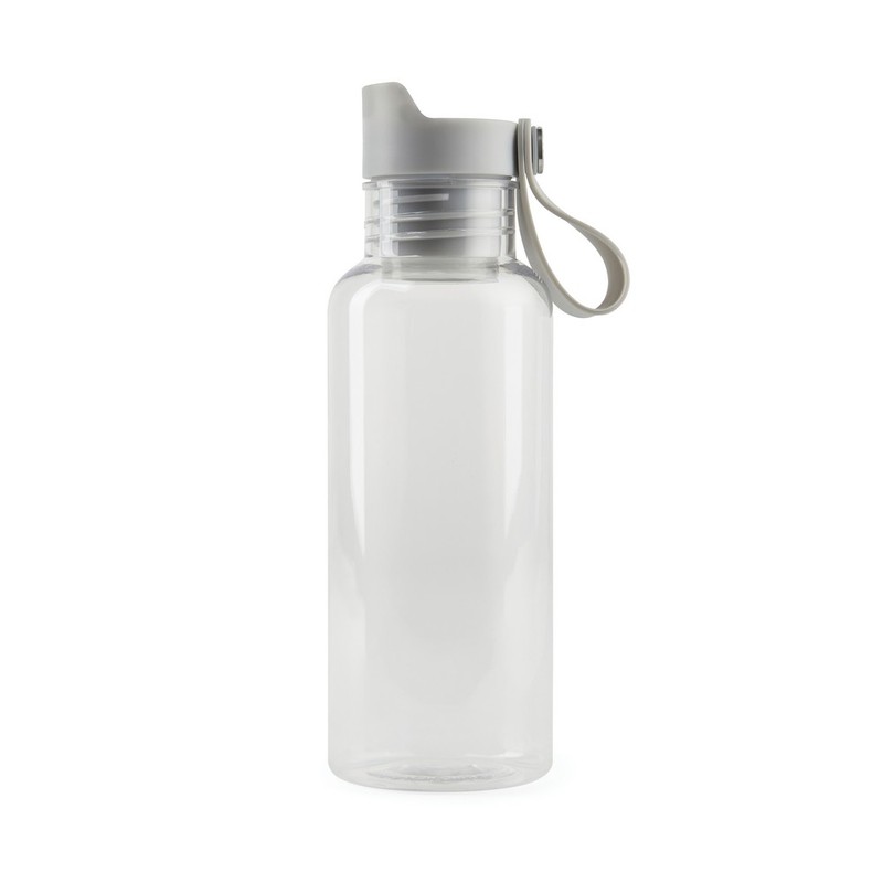 Butelka sportowa 600 ml, wykonana z RPET, całkowita zawartość materiałów z recyklingu obliczona na podstawie wagi całkowitej przedmiotu: 63%, nadaje się wyłącznie do zimnych napojów, zalecane mycie ręczne, w pudełku z papieru kraftowego z certyfikatem FSC®