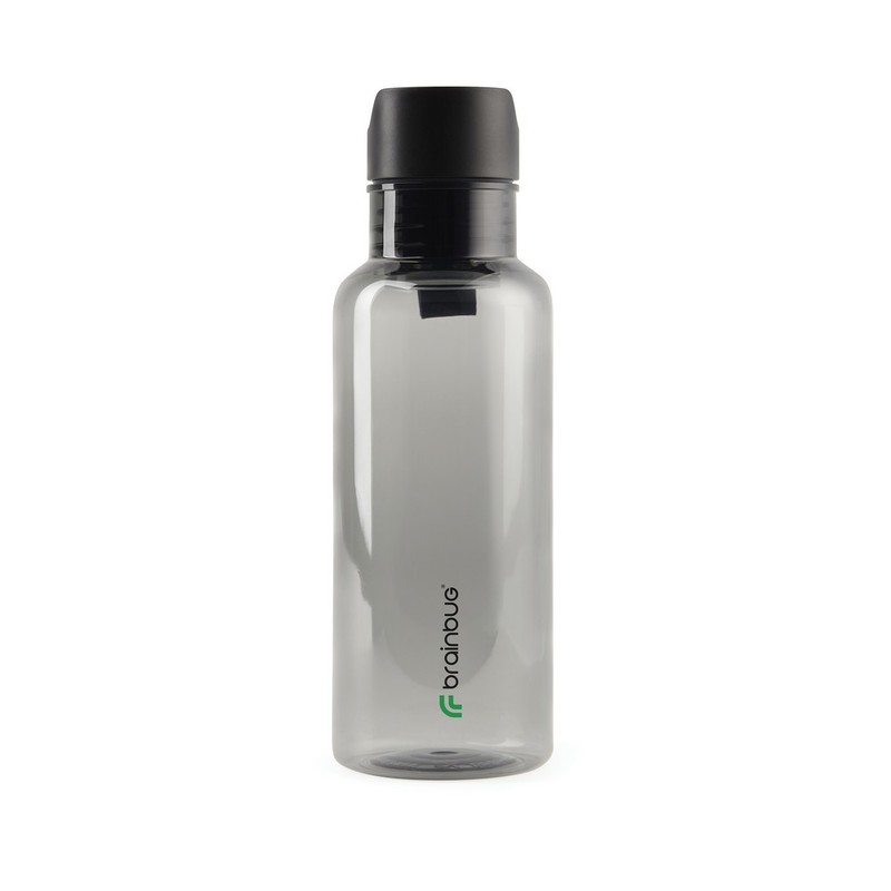 Butelka sportowa 600 ml, wykonana z RPET, całkowita zawartość materiałów z recyklingu obliczona na podstawie wagi całkowitej przedmiotu: 63%, nadaje się wyłącznie do zimnych napojów, zalecane mycie ręczne, w pudełku z papieru kraftowego z certyfikatem FSC®