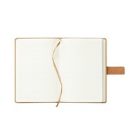 Notatnik (80 białych kartek 80 g/m2 w linie), opaska z PU, zamknięcie na magnes, wykonany z materiałów pochodzących z recyklingu z certyfikatem RCS, całkowita zawartość materiałów z recyklingu obliczona w oparciu o wagę całkowitą przedmiotu: 65%
