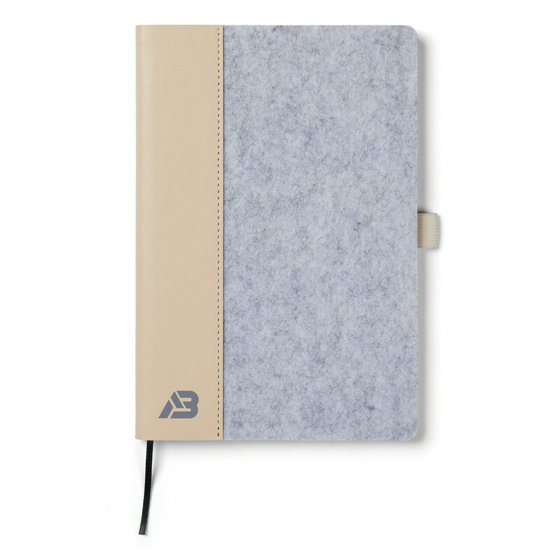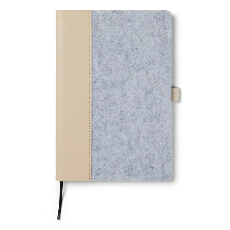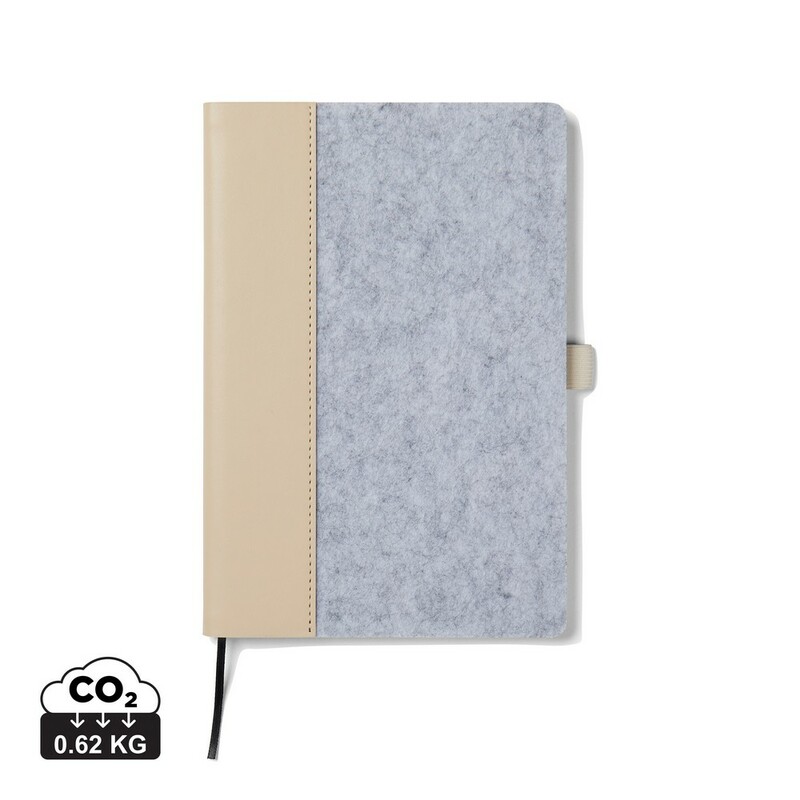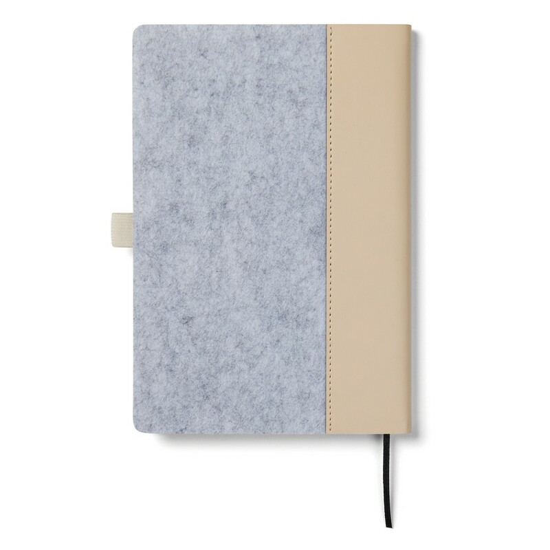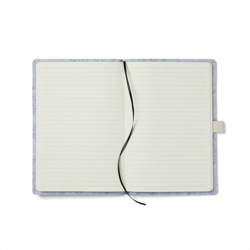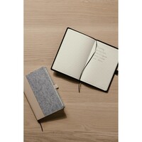 Notatnik A5 (80 kartek w linie o gramaturze 70 g/m2), wykonany z filcu z recyklingu, wnętrze z papieru makulaturowego