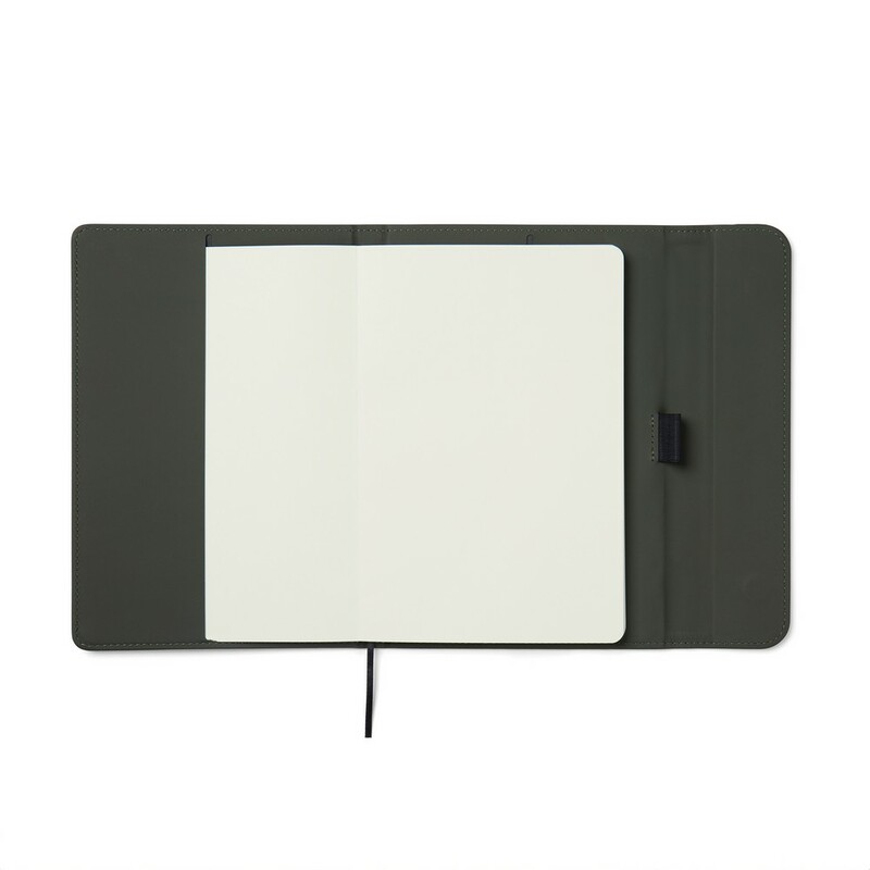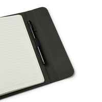 Notatnik A5 (80 kartek w linie o gramaturze 70 g/m2), okładka wykonana z PU z recyklingu, kartki z papieru makulaturowego