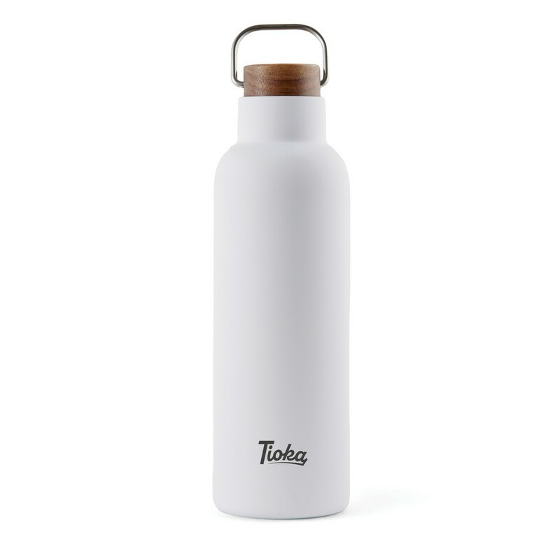 Butelka termiczna 800 ml, podwójne ścianki ze stali nierdzewnej z próżnią pomiędzy, wykonana ze stali nierdzewnej z recyklingu z certyfikatem RCS, drewniane wieczko z uchwytem, całkowita zawartość materiałów z recyklingu obliczona na podstawie wagi całkowitej przedmiotu: 79%, wyłącznie mycie ręczne, w pudełku z papieru kraftowego z certyfikatem FSC®