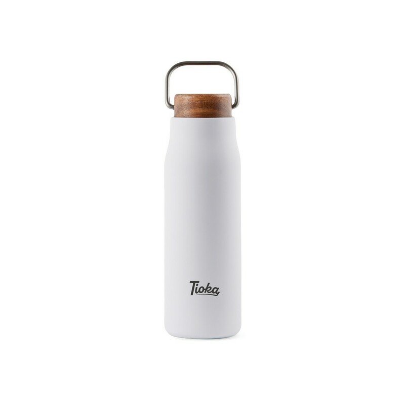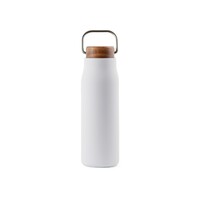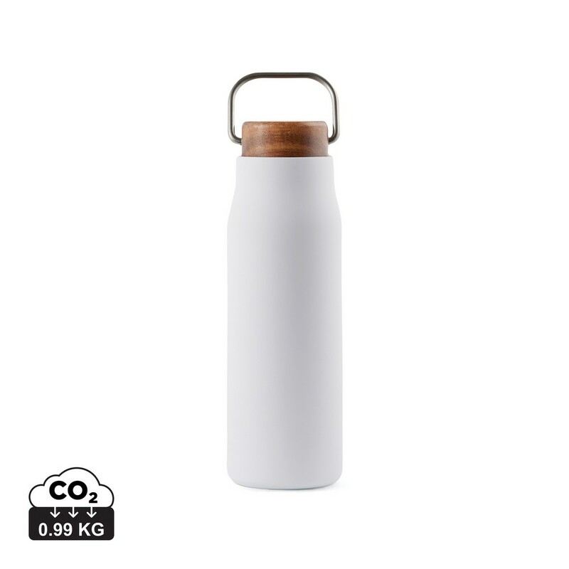 Butelka termiczna 300 ml, podwójne ścianki ze stali nierdzewnej z próżnią pomiędzy, drewniane wieczko, uchwyt, wykonana ze stali nierdzewnej z recyklingu, całkowita zawartość materiałów z recyklingu obliczona na podstawie wagi całkowitej przedmiotu: 69%, wyłącznie mycie ręczne