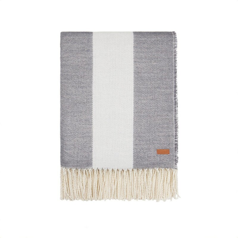 Koc z geometrycznym wzorem, wykonany z mieszanki 60% materiału Polylana® oraz 40% akrylu, dzięki zastosowaniu technologii AWARE™ wykorzystane włókna są identyfikowalne z pochodzenia oraz wyprodukowane zgodnie z ideą zrównoważonego rozwoju, 2% wpływów z każdego sprzedanego produktu z AWARE™ jest przekazywane na rzecz Water.org