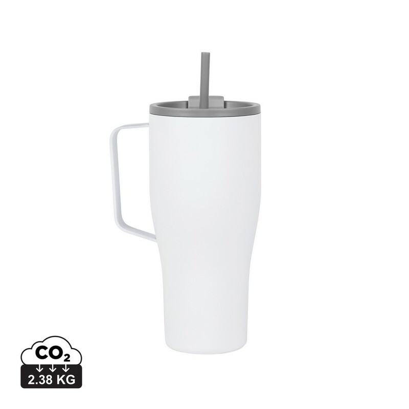 Kubek termiczny 880 ml, uchwyt, podwójne ścianki z próżnią pomiędzy, utrzymuje temperaturę napojów ciepłych do 3 godzin oraz zimnych do 16 godzin, wykonana ze stali nierdzewnej z recyklingu z certyfikatem RCS, całkowita zawartość materiałów z recyklingu obliczona w oparciu o wagę całkowitą przedmiotu: 65%, wyłącznie mycie ręczne