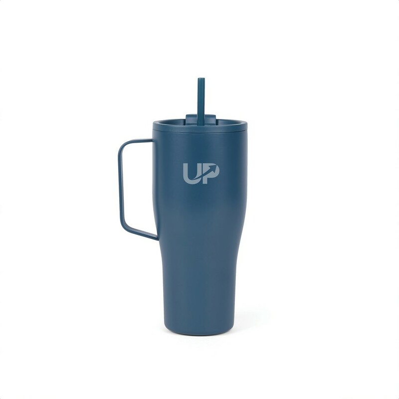 Kubek termiczny 880 ml, uchwyt, podwójne ścianki z próżnią pomiędzy, utrzymuje temperaturę napojów ciepłych do 3 godzin oraz zimnych do 16 godzin, wykonana ze stali nierdzewnej z recyklingu z certyfikatem RCS, całkowita zawartość materiałów z recyklingu obliczona w oparciu o wagę całkowitą przedmiotu: 65%, wyłącznie mycie ręczne