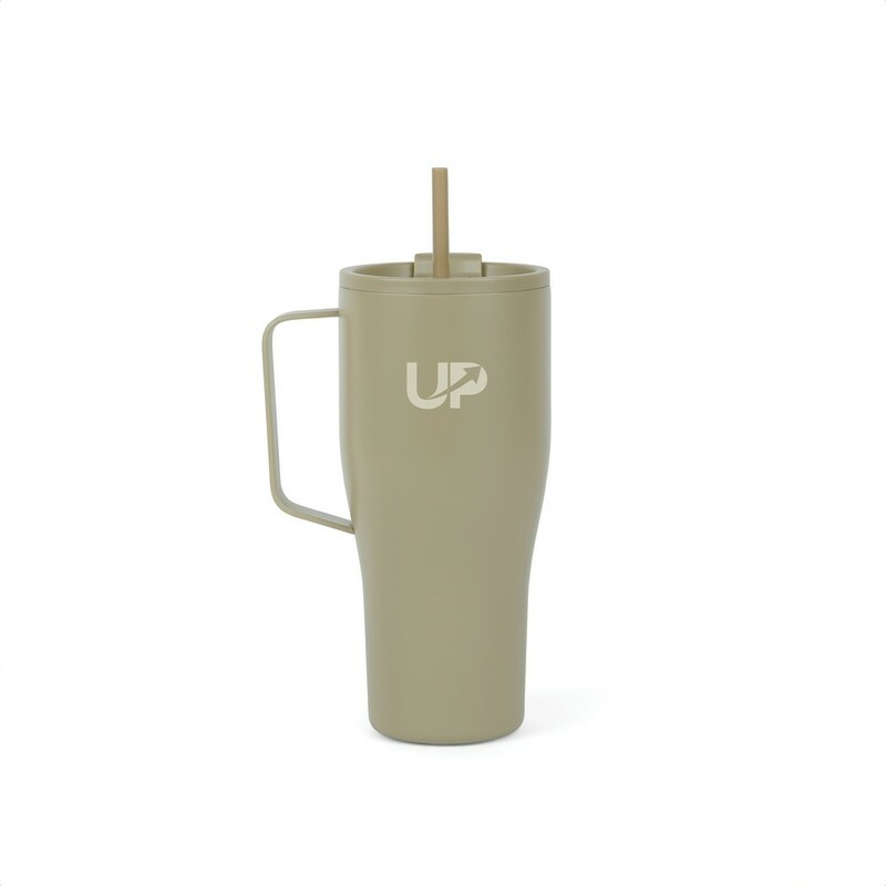Kubek termiczny 880 ml, uchwyt, podwójne ścianki z próżnią pomiędzy, utrzymuje temperaturę napojów ciepłych do 3 godzin oraz zimnych do 16 godzin, wykonana ze stali nierdzewnej z recyklingu z certyfikatem RCS, całkowita zawartość materiałów z recyklingu obliczona w oparciu o wagę całkowitą przedmiotu: 65%, wyłącznie mycie ręczne