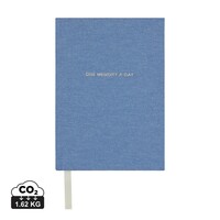 Notatnik A5, pamiętnik, twarda okładka, tasiemka zakładkowa, umożliwia zapisywanie jednego wspomnienia dziennie przez okres trzech lat, wykonany z papieru z recyklingu z certyfikatem RCS, całkowita zawartość materiałów z recyklingu obliczona w oparciu o wagę całkowitą przedmiotu: 83%