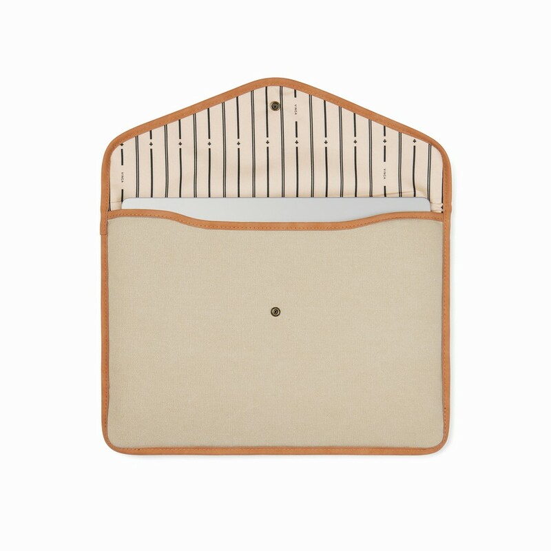 Pokrowiec na laptopa 14", kieszeń z przodu, wykonany z płótna z recyklingu, detale z PU, całkowita zawartość materiałów z recyklingu obliczona na podstawie wagi całkowitej produktu: 37%