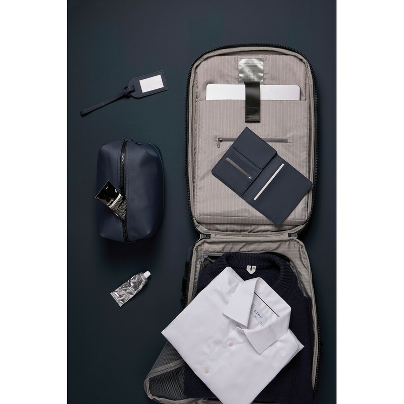 Plecak na laptopa, wykonany z poliestru z recyklingu z certyfikatem RCS, wykończenie z PU, przestronna przegroda główna, dwie kieszenie na zewnątrz, pasek do zamocowania na walizce, miękkie, regulowane paski na ramiona, całkowita zawartość materiałów z recyklingu obliczona w oparciu o wagę całkowitą przedmiotu: 16%