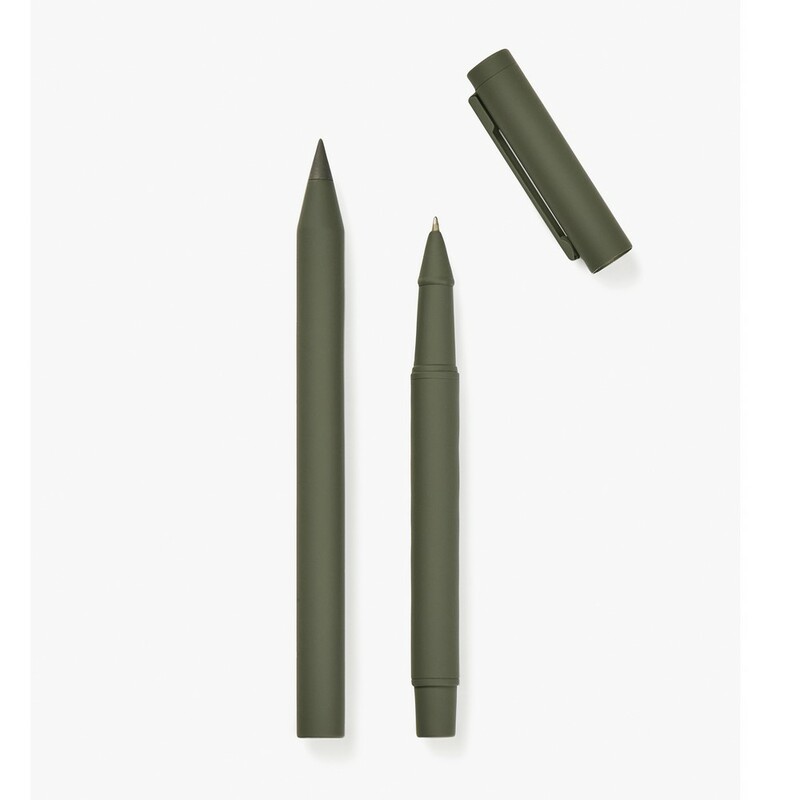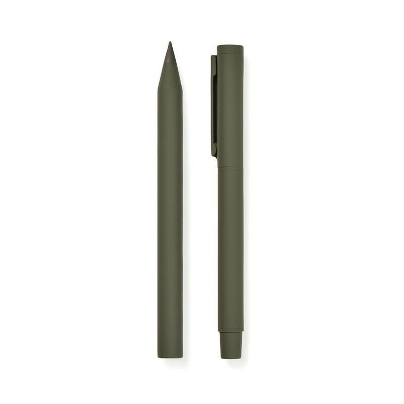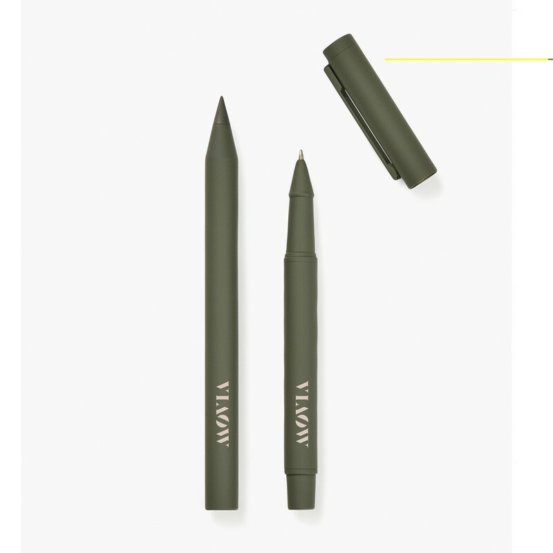 Ekskluzywny zestaw piśmienny, pióro kulkowe oraz długopis, niebieski wkład, wykonane z materiału z recyklingu, produkt zawiera 52% aluminium z recyklingu oraz 10% stali nierdzewnej z recyklingu