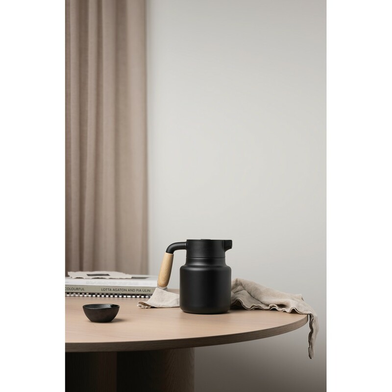 Dzbanek próżniowy 1200 ml, wykonany ze stali nierdzewnej z recyklingu z certyfikatem RCS, wieczko posiada wygodny przycisk oraz duży otwór ułatwiający napełnianie i czyszczenie, utrzymuje temperaturę napojów ciepłych do 6 h oraz zimnych do 24 h, nie nadaje się do użycia w kuchence mikrofalowej, wyłącznie mycie ręczne, całkowita zawartość materiałów z recyklingu obliczona w oparciu o wagę całkowitą przedmiotu: 62%
