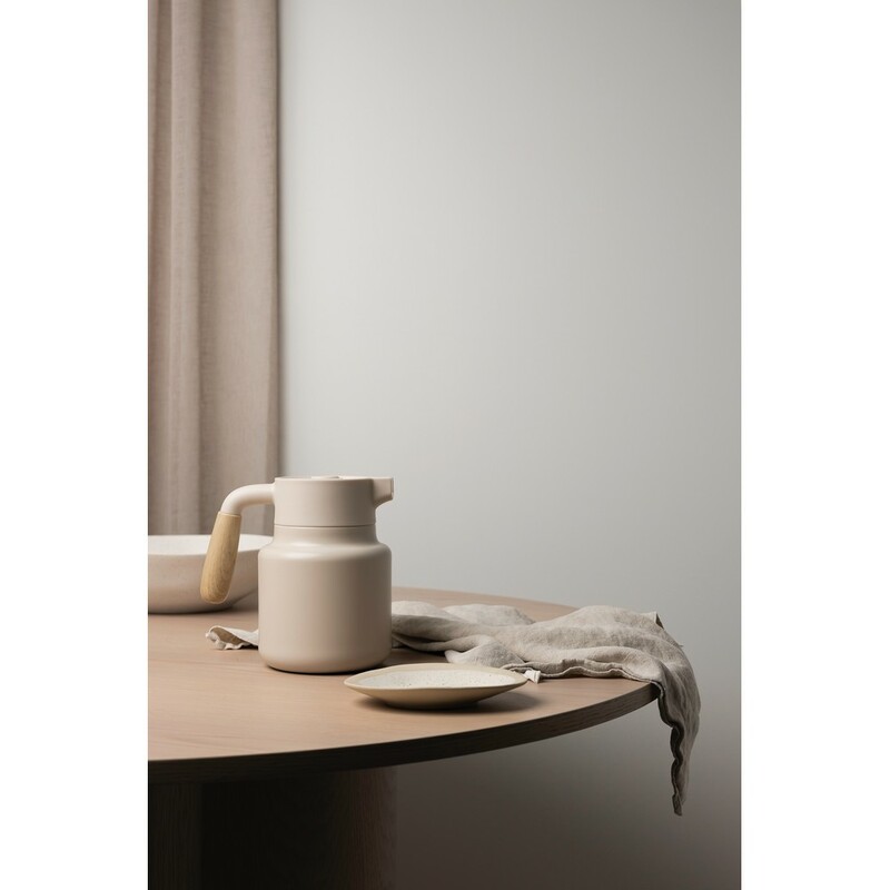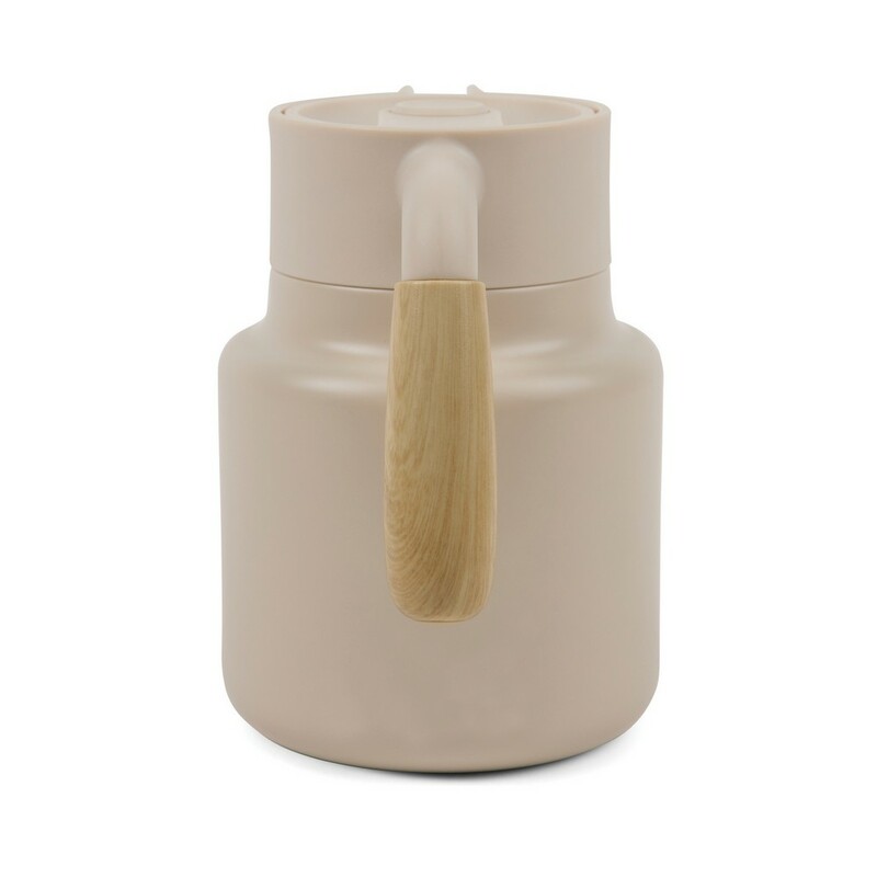 Dzbanek próżniowy 1200 ml, wykonany ze stali nierdzewnej z recyklingu z certyfikatem RCS, wieczko posiada wygodny przycisk oraz duży otwór ułatwiający napełnianie i czyszczenie, utrzymuje temperaturę napojów ciepłych do 6 h oraz zimnych do 24 h, nie nadaje się do użycia w kuchence mikrofalowej, wyłącznie mycie ręczne, całkowita zawartość materiałów z recyklingu obliczona w oparciu o wagę całkowitą przedmiotu: 62%