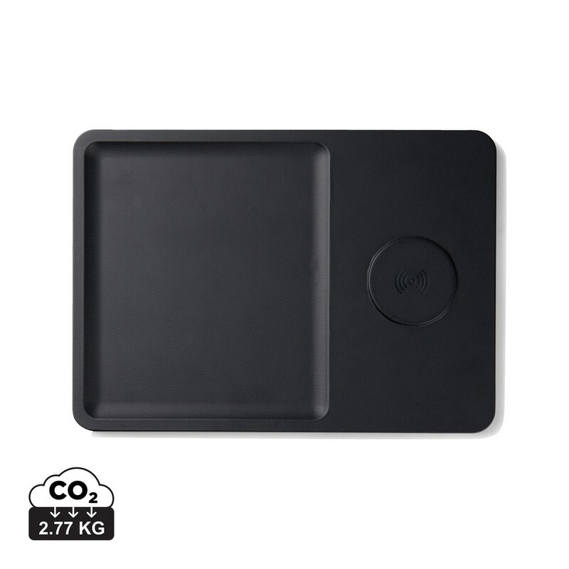 Ładowarka bezprzewodowa 15W, organizer na drobne akcesoria, wejście USB-C 9V/2A, działa z telefonami posiadającymi możliwość ładowania indukcyjnego, wykonana z materiałów z recyklingu, całkowita zawartość materiałów z recyklingu obliczona na podstawie wagi całkowitej przedmiotu: 51%