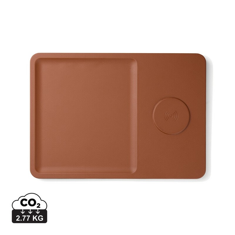 Ładowarka bezprzewodowa 15W, organizer na drobne akcesoria, wejście USB-C 9V/2A, działa z telefonami posiadającymi możliwość ładowania indukcyjnego, wykonana z materiałów z recyklingu, całkowita zawartość materiałów z recyklingu obliczona na podstawie wagi całkowitej przedmiotu: 51%