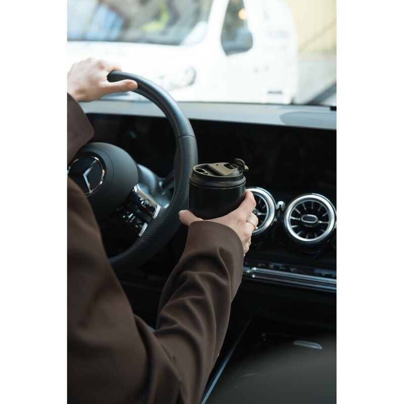 Kubek podróżny 350 ml, zamykane wieczko, utrzymuję temperaturę napojów gorących do 4 godzin i zimnych do 12 godzin, wyłącznie mycie ręczne, całkowita zawartość materiałów z recyklingu obliczona na podstawie wagi całkowitej przedmiotu: 30%