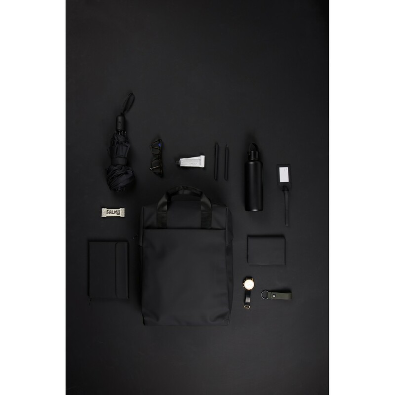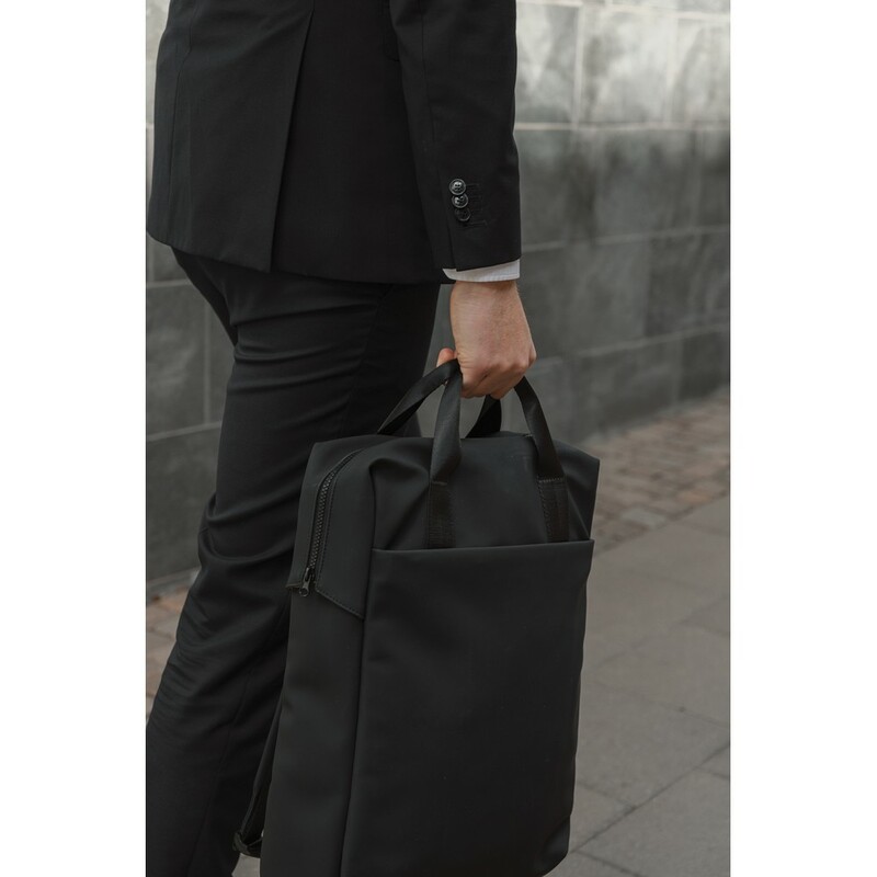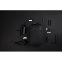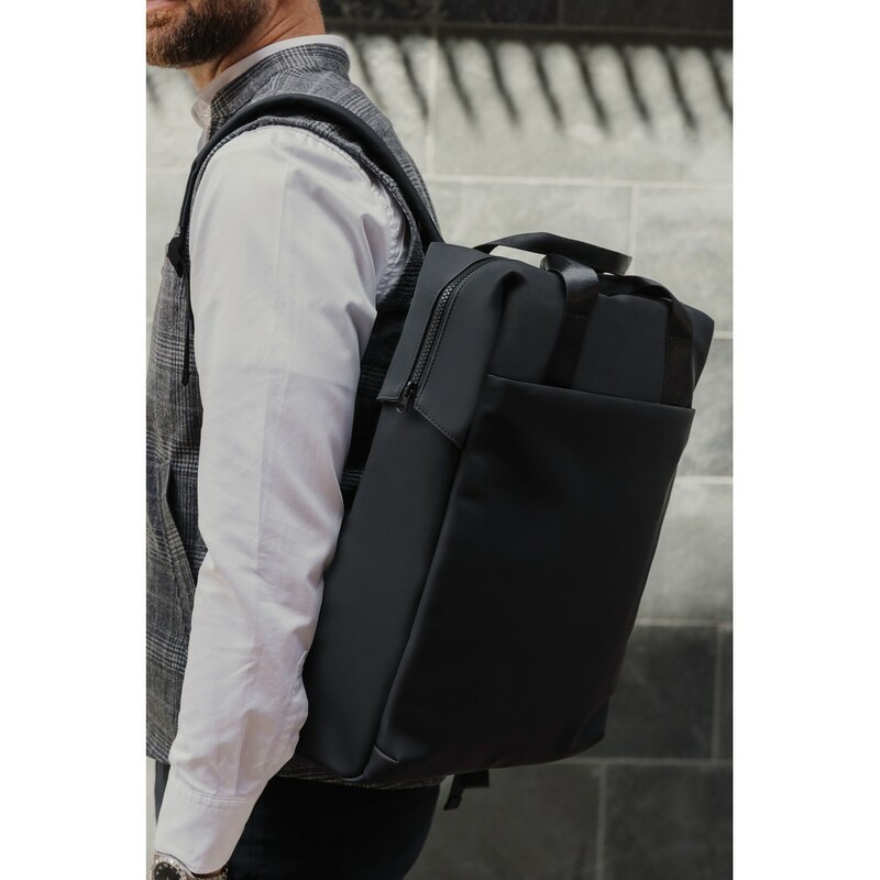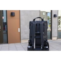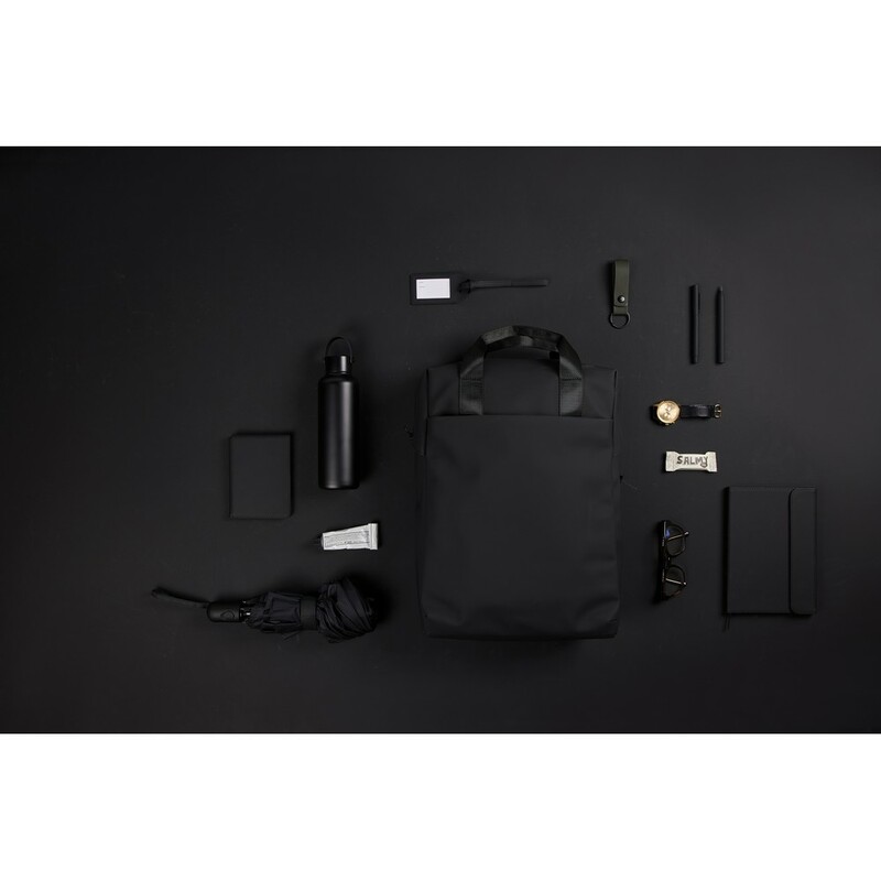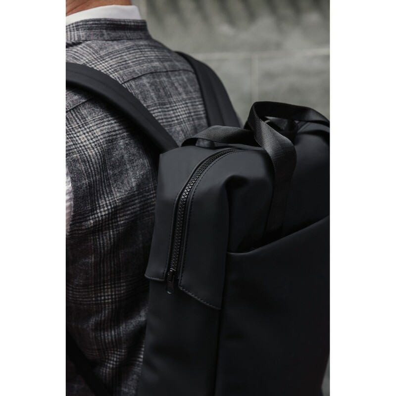 Plecak, przestronna przegroda główna zapinana na zamek, posiada kieszeń wewnątrz, kieszeń na zewnątrz oraz uchwyt na butelkę, pasek do zamocowania na walizce, regulowane paski na ramię, całkowita zawartość materiałów z recyklingu obliczona na podstawie wagi całkowitej przedmiotu: 19%