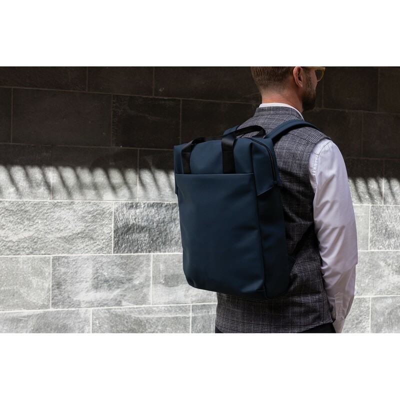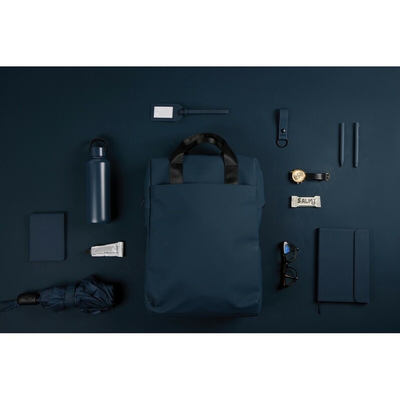 Plecak, przestronna przegroda główna zapinana na zamek, posiada kieszeń wewnątrz, kieszeń na zewnątrz oraz uchwyt na butelkę, pasek do zamocowania na walizce, regulowane paski na ramię, całkowita zawartość materiałów z recyklingu obliczona na podstawie wagi całkowitej przedmiotu: 19%