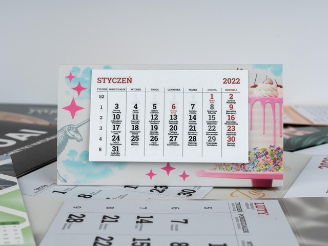 Papier: | karton 300g (podstawa), offset 80g (kalendarium) |