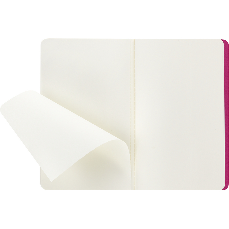 Duży zeszyt MOLESKINE Cahier Journal (ok. A5, large), 80 gładkich stron, miękka okładka z widocznymi przeszyciami na grzbiecie, kieszeń wewnętrzna, 16 kartek z perforacją umożliwiającą wyrwanie na końcu