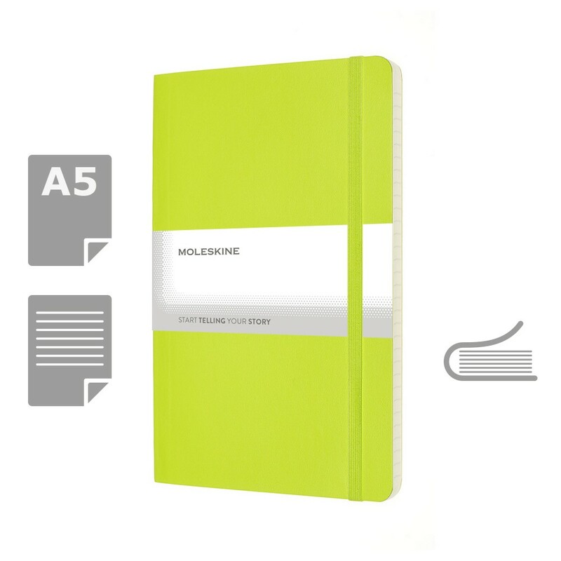 Notatnik duży (ok. A5, large) MOLESKINE, miękka okładka, 192 strony w linie, kieszeń wewnętrzna, zakładka i elastyczna opaska do zamykania