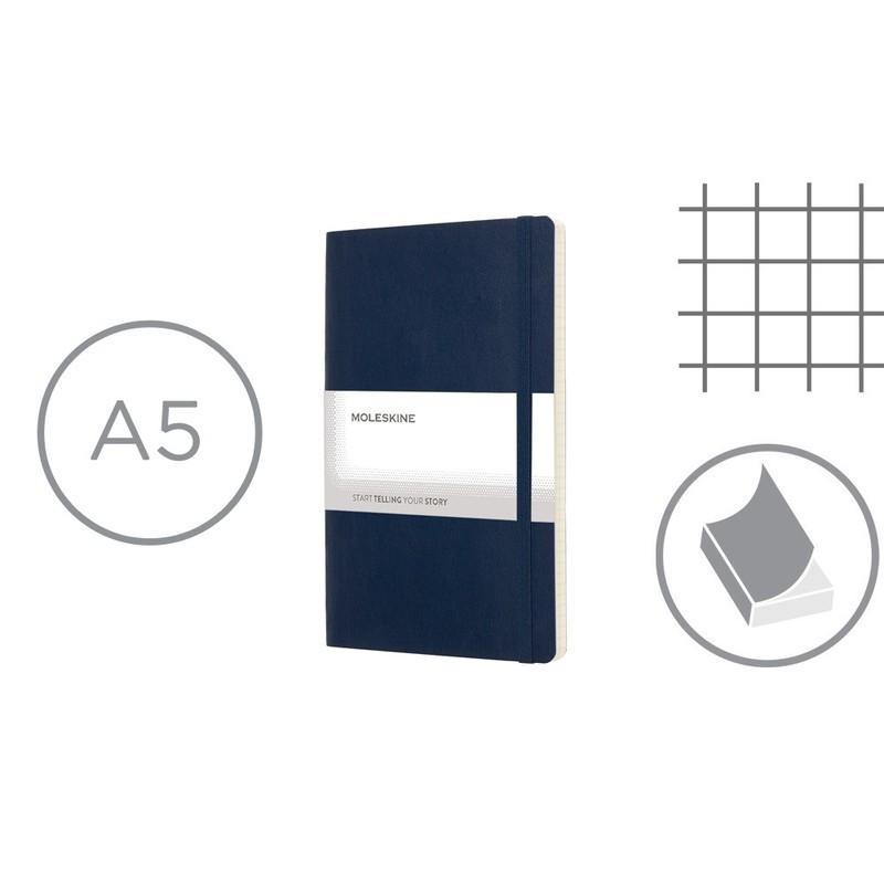 Notatnik duży (ok. A5, large) MOLESKINE, miękka okładka, 192 strony w kratkę, kieszeń wewnętrzna, zakładka i elastyczna opaska do zamykania