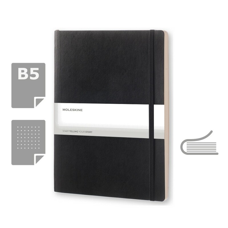 Notatnik XL (ok. B5) MOLESKINE, miękka okładka, 192 kropkowane strony, kieszeń wewnętrzna, zakładka i elastyczna opaska do zamykania