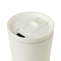 Kubek termiczny 500 ml, posiada podwójne ścianki ze stali nierdzewnej z próżnią między ściankami, co spowalnia oddawanie temperatury na zewnątrz, zachowując funkcje termosu, wykonany z materiałów z recyklingu