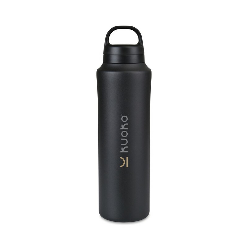 Butelka termiczna 740 ml, posiada podwójne ścianki ze stali nierdzewnej z próżnią między ściankami, co spowalnia oddawanie temperatury na zewnątrz, zachowując funkcje termosu, wykonana z materiałów z recyklingu