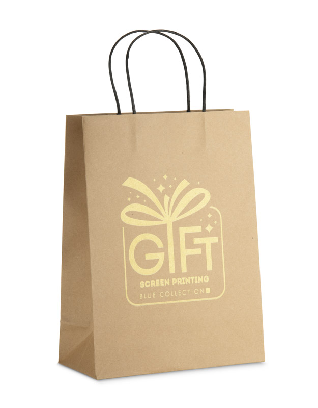 Torba papierowa PAKLO w rozmiarze dużym to elegancka i wytrzymała torba z papieru kraftowego o gramaturze 200 g. Wyposażona w czarne, skręcane uchwyty z papieru, które dobrze leżą w dłoni i nadają całości elegancki kontrast. Jej duży format pozwala na pakowanie większych produktów, katalogów lub zestawów prezentowych. Prosty, naturalny wygląd sprawia, że doskonale nadaje się do zastosowań biznesowych i promocyjnych. Torba dostępna z możliwością znakowania logo.