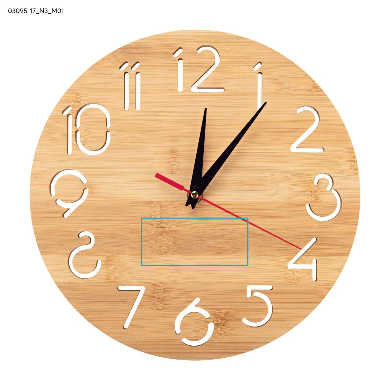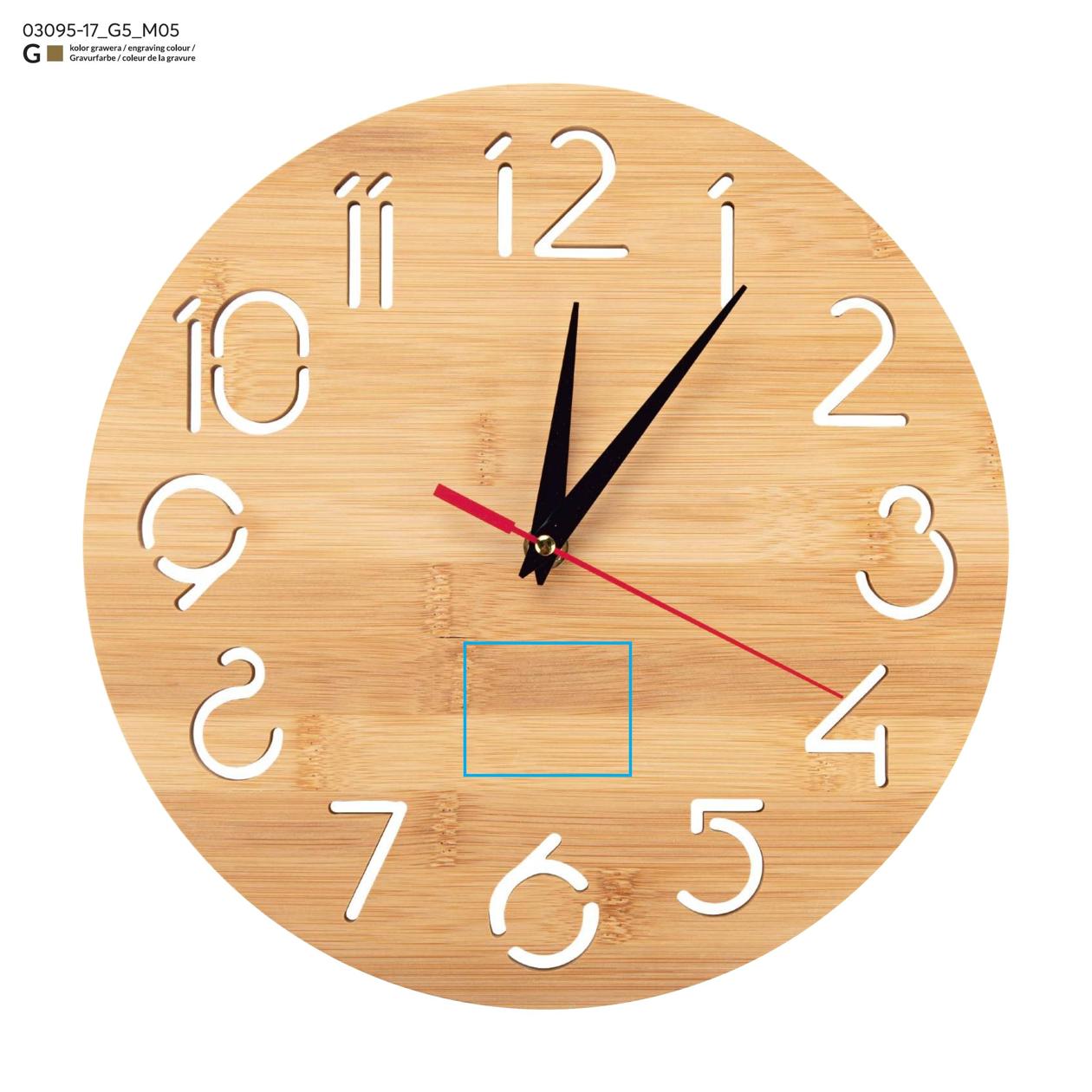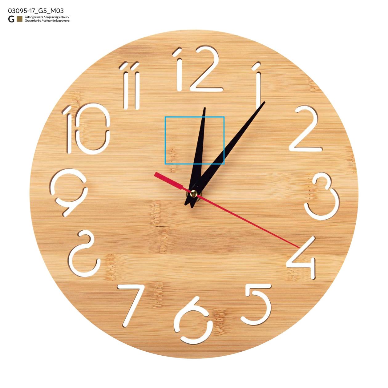 Zegar ścienny TOKKI to połączenie funkcjonalności i estetyki w naturalnym wydaniu. Wykonany z bambusa, wyróżnia się nowoczesnym wyglądem, a przeźroczyste cyfry nadają mu lekkości i subtelnego charakteru. Klasyczne wskazówki zapewniają wygodny i czytelny odczyt godziny, a cichy mechanizm sprawia, że zegar doskonale sprawdzi się zarówno w domu, jak i w biurze czy kawiarni. Montaż jest prosty, a zasilanie odbywa się na jedną baterię AA (nie dołączoną do zestawu). Zegar TOKKI to również ciekawa propozycja na gadżet reklamowy — dzięki możliwości znakowania logo staje się stylowym elementem promocyjnym.